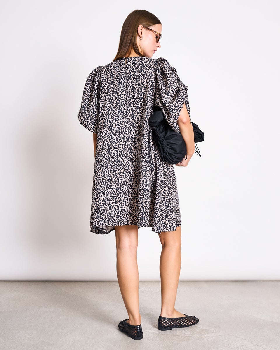 MALUS on täydellinen valinta, kun etsit asua, jossa yhdistyvät raikkaus ja rohkeus. Tämä A-linjainen mekko ihastuttaa väljällä istuvuudellaan ja tarkkaan harkituilla yksityiskohdilla, materiaalilla ja printillä.